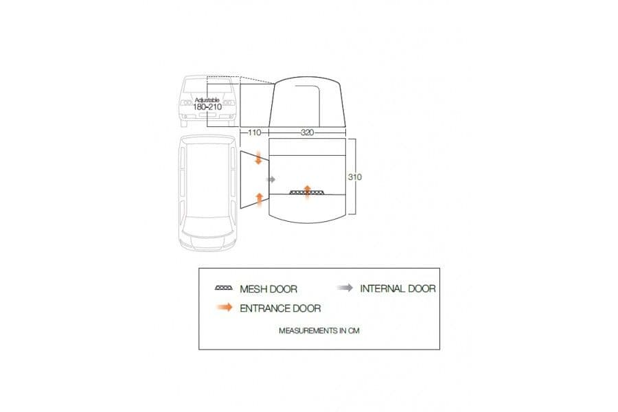 Perfect for couples and young families, the Cove is a compact awning that provides valuable extra space on weekends away. Featuring lightweight Powerflex poles and Vango's Sentinel Active fabric ensuring a compact pack size leaving you with more room in your campervan for your camping essentials. With space to clip in a Drive Away Awning Bedroom should guests come to stay and a pre-attached front canopy, this versatile drive away awning will be a staple to expand your liveable space on any trip. Featuring a front-facing layout, the Cove is positioned the same way as your campervan, ensuring you are always facing the view and giving you added privacy from your campsite neighbours. The ideal addition to your campervan for wherever your next adventure takes you.